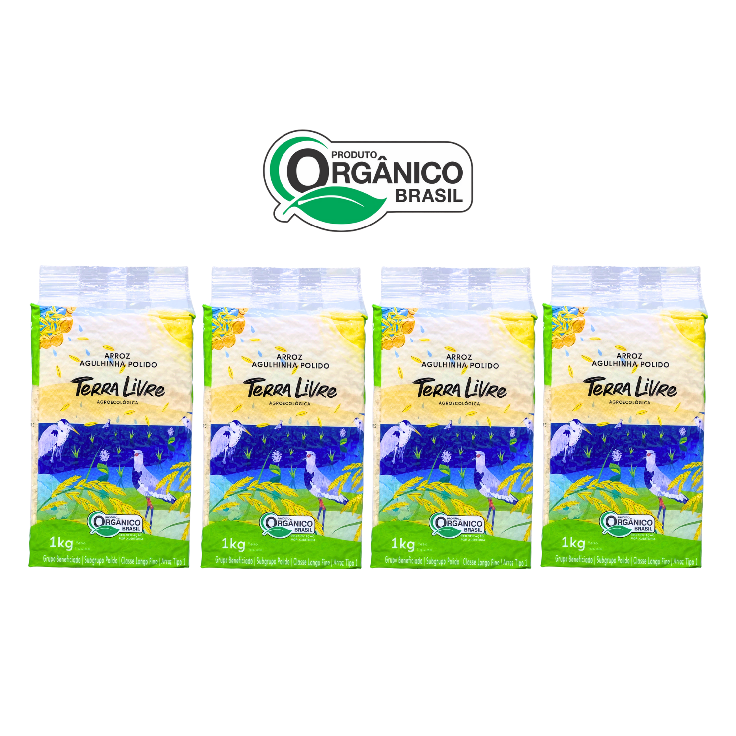 Kit 4 Arroz Branco Agulhinha (Longo Fino) Orgânico à Vácuo Terra Livre 1 Kg