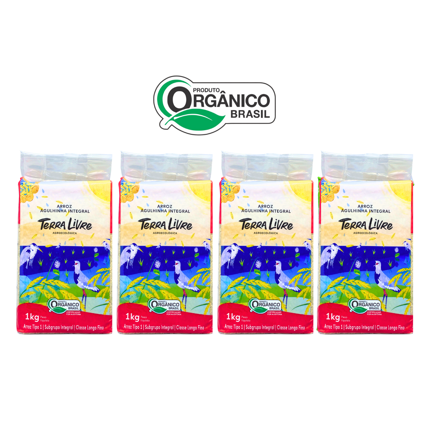 Kit 4 Arroz Integral Agulhinha (Longo Fino) Orgânico à Vácuo Terra Livre 1 Kg