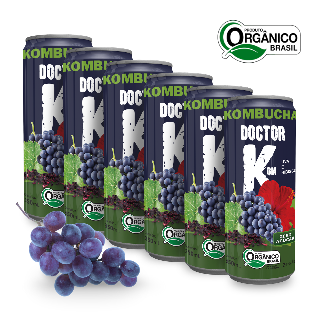 Kit 6 Kombucha Orgânica Zero Açúcar Doutor K Uva Com Hibisco 350 ml