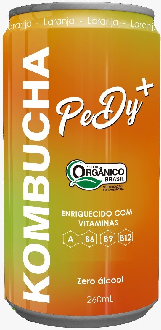 Kombucha Orgânica Laranja + Vitaminas A B6 B9 B12 Pedy+ Orgânica 260 ml