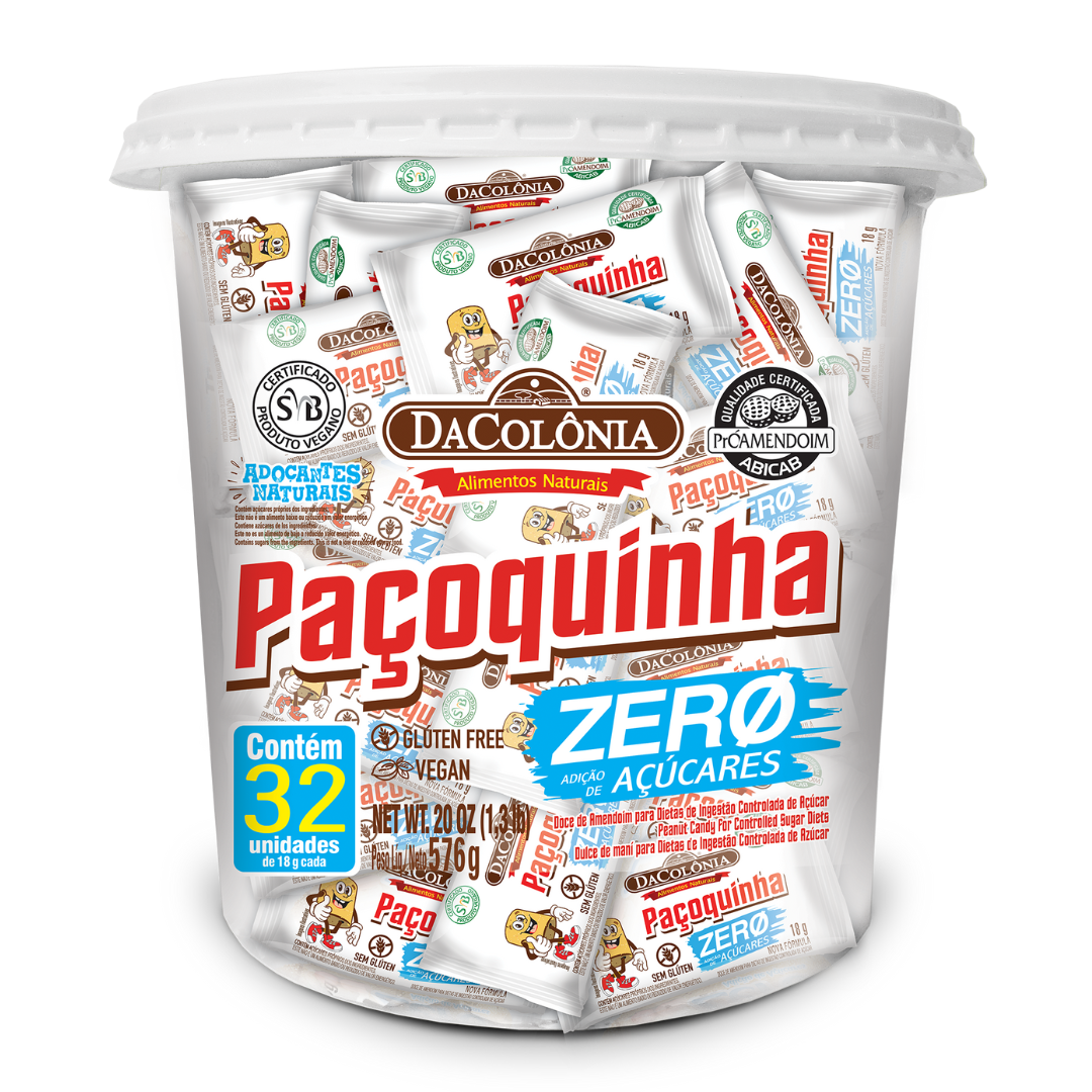 A Paçoquinha Rolha DaColônia Zero Adição de Açúcar é o doce ideal para quem busca o gostinho clássico da paçoca, mas sem abrir mão do equilíbrio alimentar. Elaborada com amendoim selecionado e adoçantes naturais como maltitol e xilitol, essa delícia é perfeita para dietas com restrição de açúcar, sem comprometer o sabor.