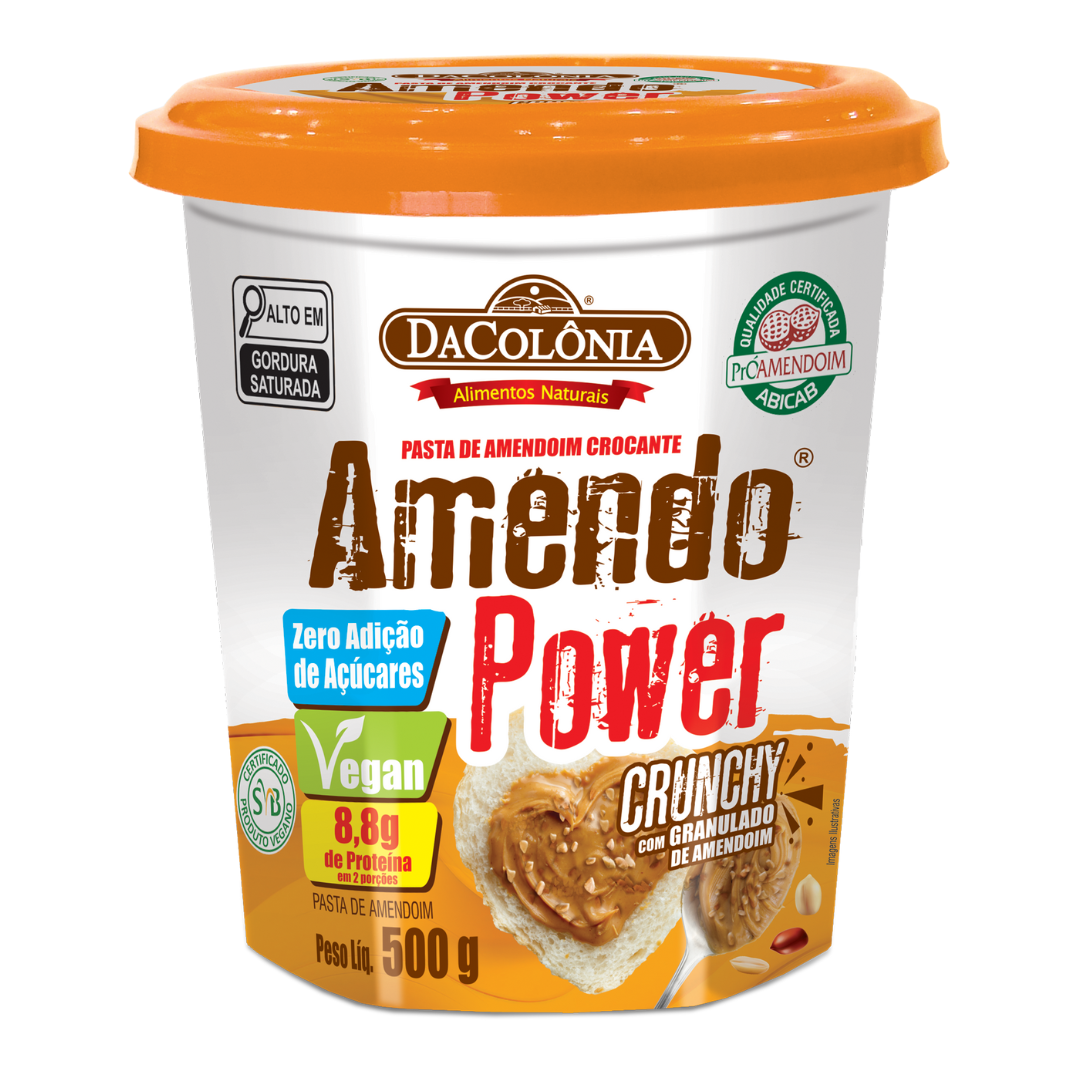 A Amendo Power Crunchy DaColônia é uma pasta integral de amendoim com granulados crocantes, feita exclusivamente com amendoim torrado, sem adição de açúcares ou conservantes. Uma explosão de sabor e textura para quem valoriza nutrição, energia e um toque especial de crocância no dia a dia.